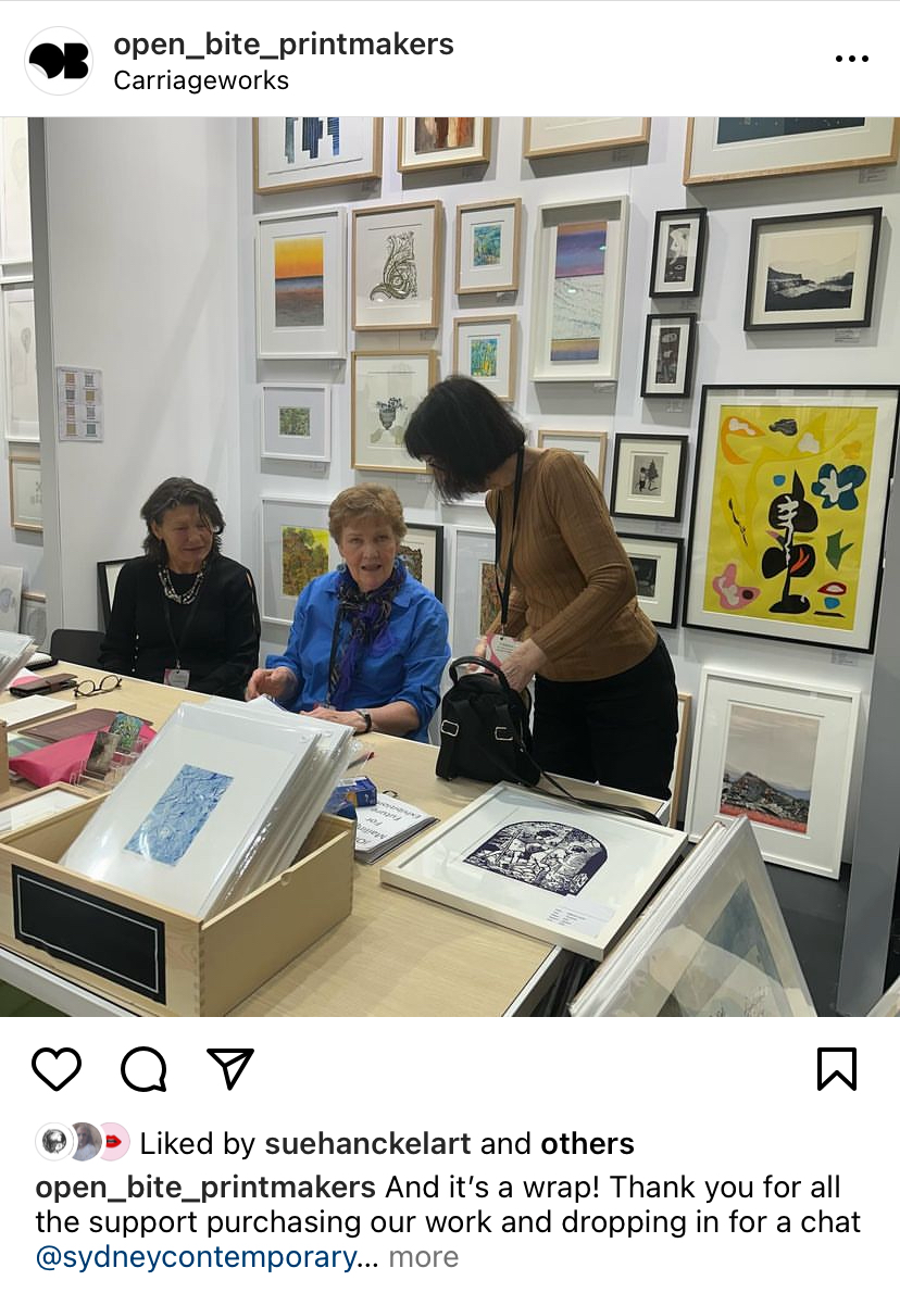 Open Bite Printmakers took part in the new, enlarged Sydney Contemporary Art Fair - WORKS ON PAPER this year, and had a constant flow of interested viewers..